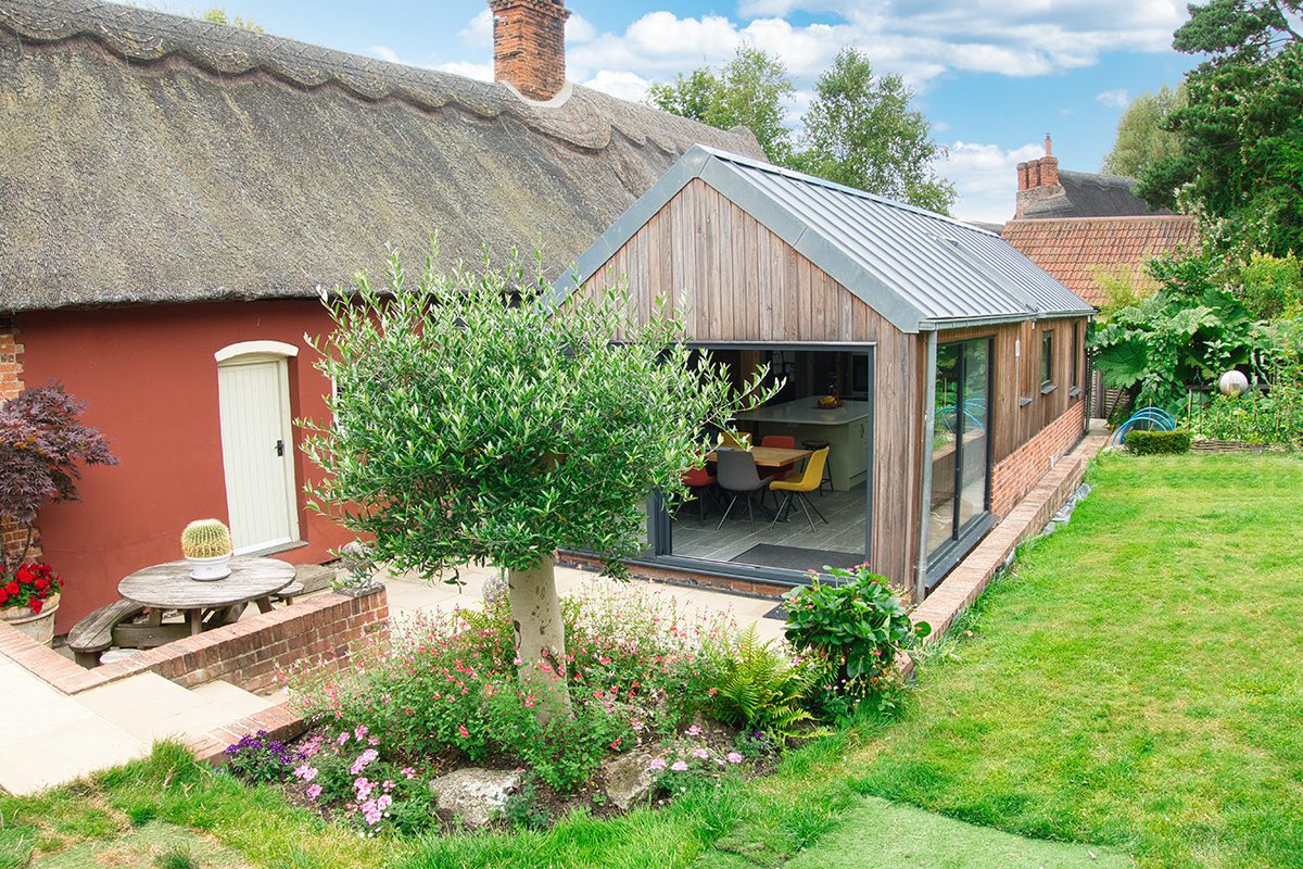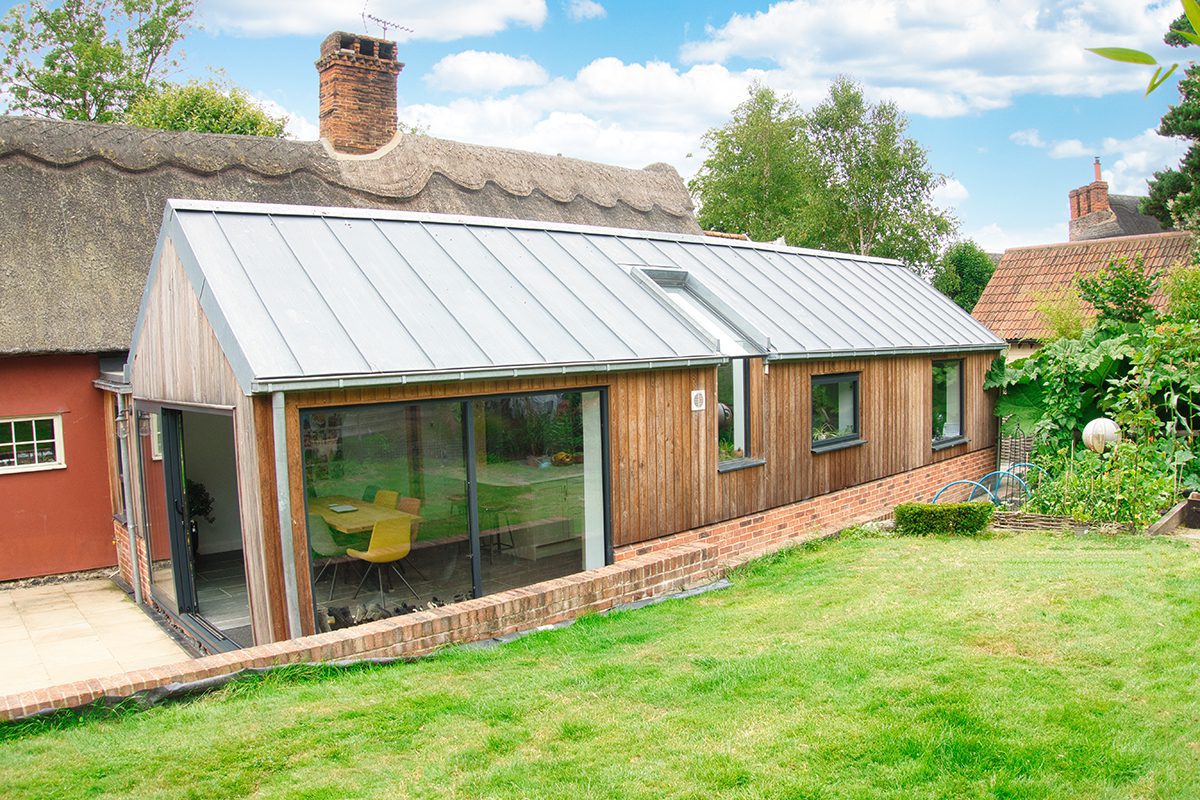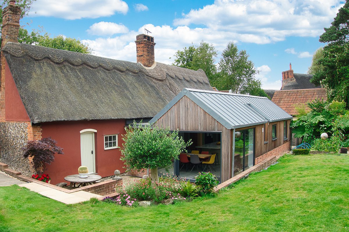This building project included a large extension to a Grade II listed building  to a thatched cottage in a village called Ousden in Suffolk.